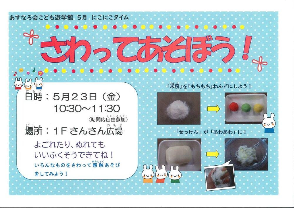 【終了しました】5/23(金)にこにこタイム「さわってあそぼう!」