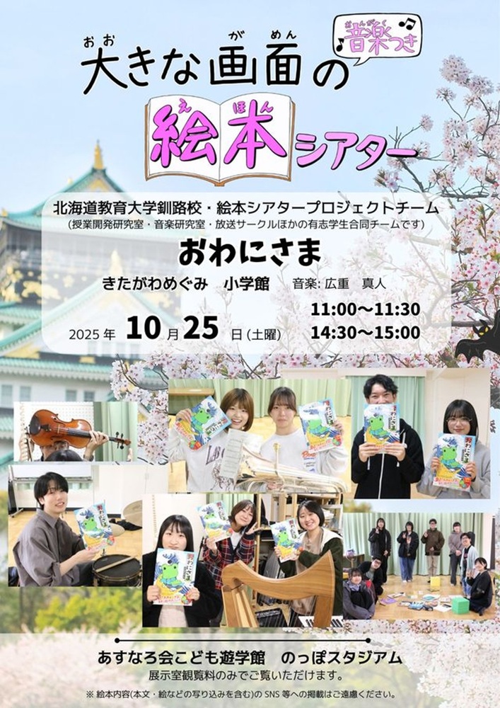 教育大学のお兄さん・お姉さんが、大きな絵本を持って遊学館にやってくる!