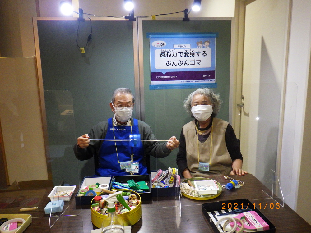 「2021年度青少年のための科学の祭典サイエンス屋台村」にてボランティアブースを出展。内容は「遠心力で変化するぶんぶんゴマ」・「アロマ蒸留実験+バスボム作り」です。たくさんの子どもたちに科学の不思議・楽しさを感じてもらいました。