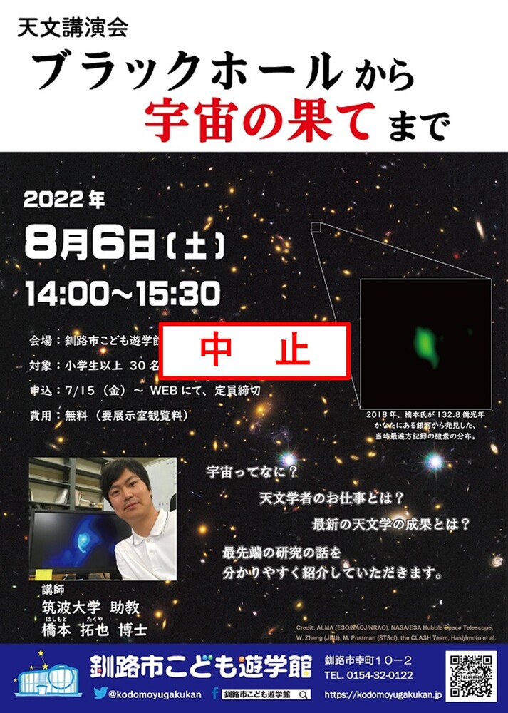 【中止】天文講演会 「ブラックホールから宇宙の果てまで」
