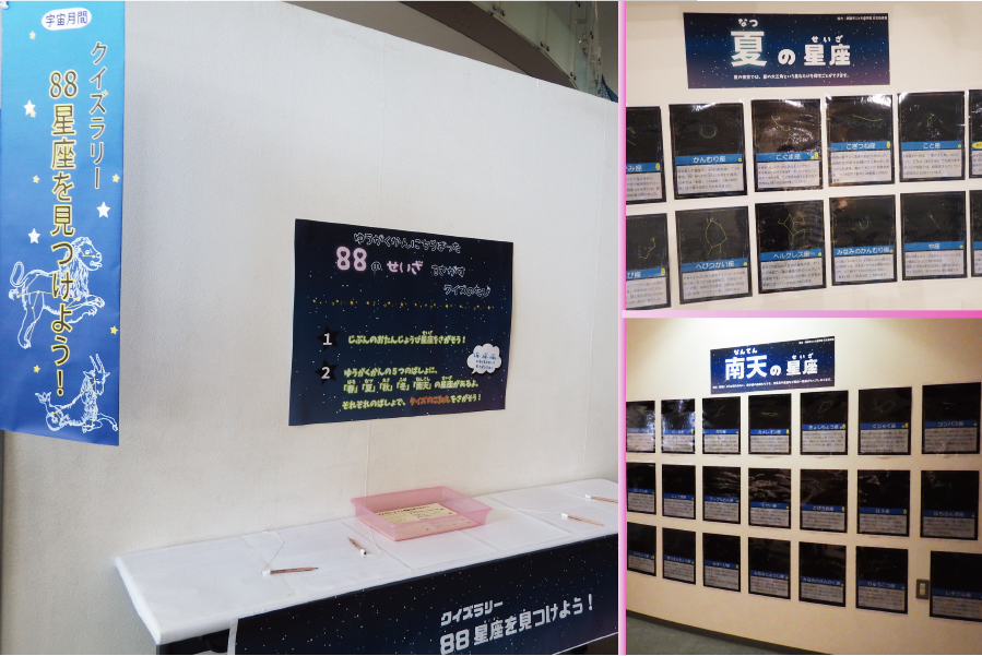 クイズラリー 88星座を見つけよう今年は88星座が制定されてちょうど100周年!クイズの答えを探しながら、星座に詳しくなろう☆・日 時:9月1日(水)~9月30日(金)9:30-17:00・場 所:館内各所