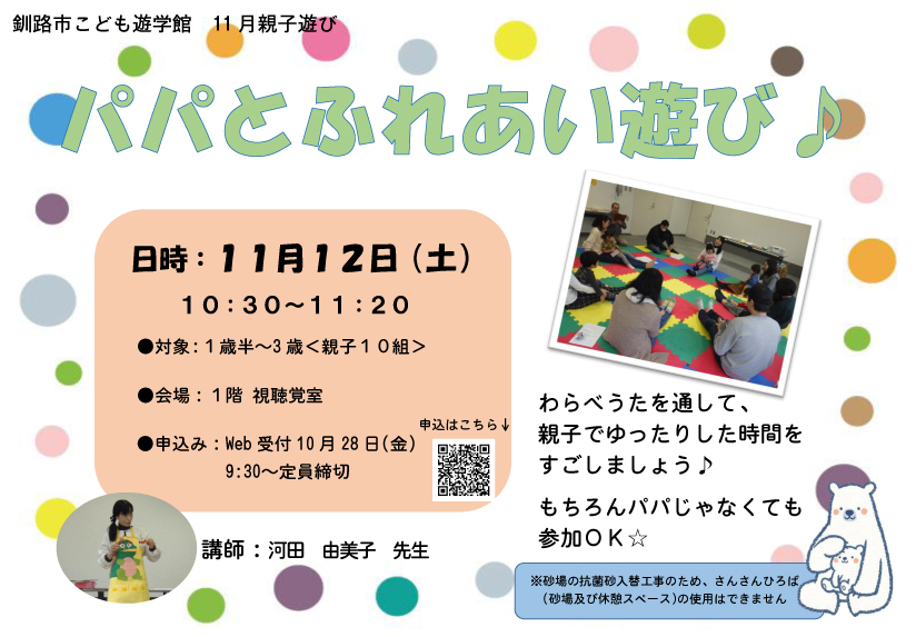 【終了】11/12(土) 親子遊び「パパとふれあい遊び♪」