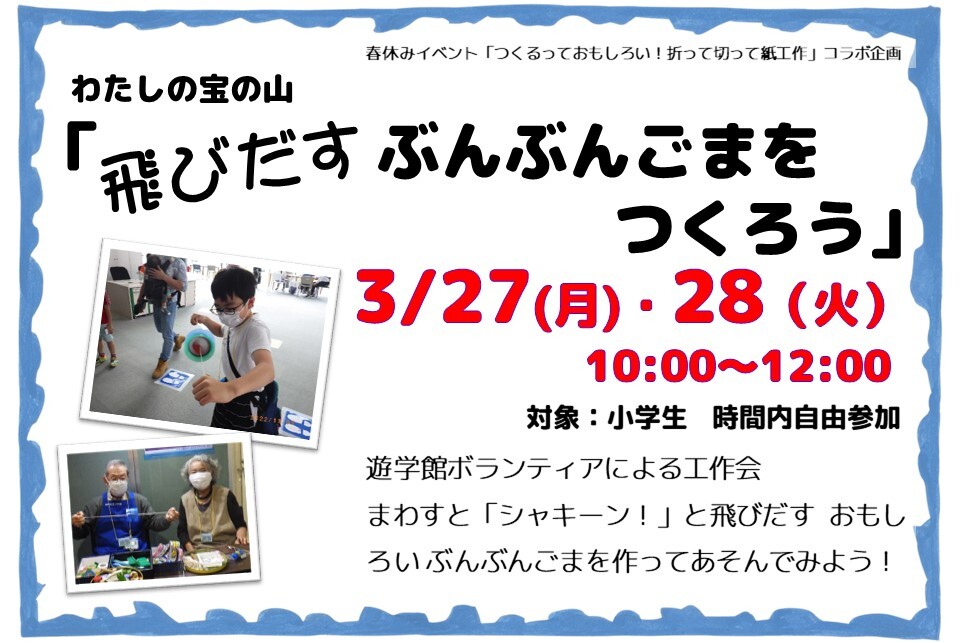 【終了】3/27(月)・28(火)わたしの宝の山~飛び出すぶんぶんごまをつくろう