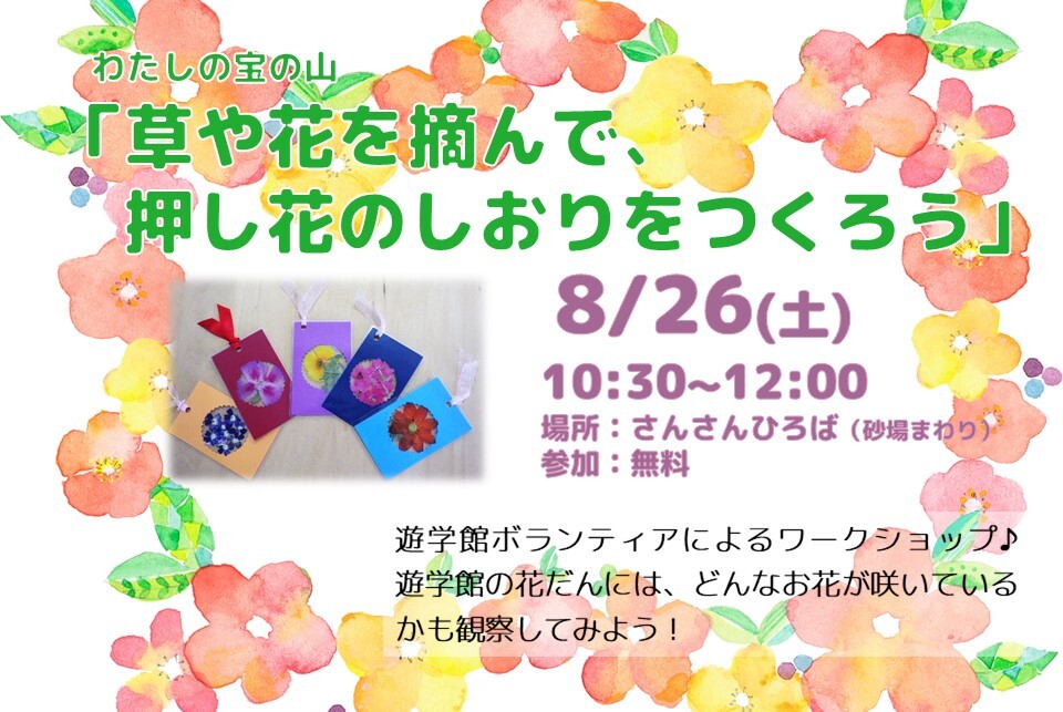 【終了しました】わたしの宝の山~草や花を摘んで押し花のしおりをつくろう!