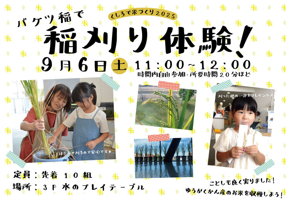 ゆうがくかん産のお米をみんなで収穫しよう♪