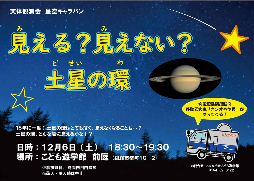 12/6(土) 天体観測会「星空キャラバン」見える?見えない?土星の環