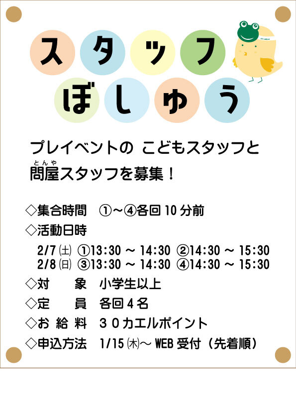 プレイベントで働いてくれるこどもスタッフを大募集します!