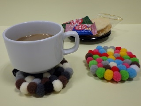 ふわふわのカラフルボールを使って冬にぴったりのコースターを作りましょう!