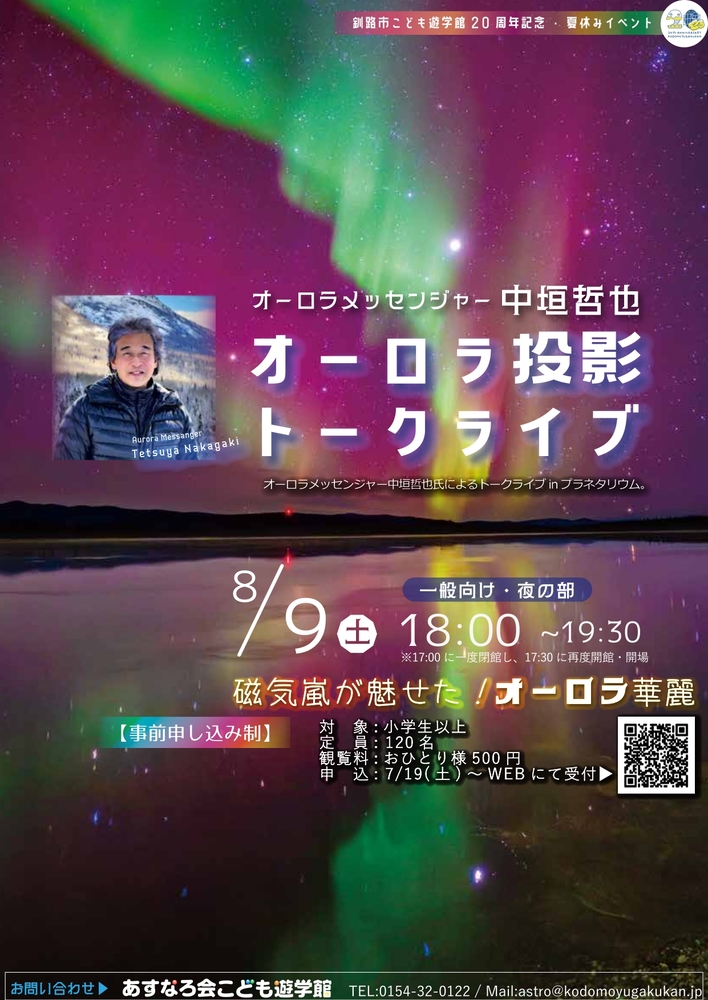 【終了しました】8/9(土) 中垣哲也 オーロラ投影トークライブ