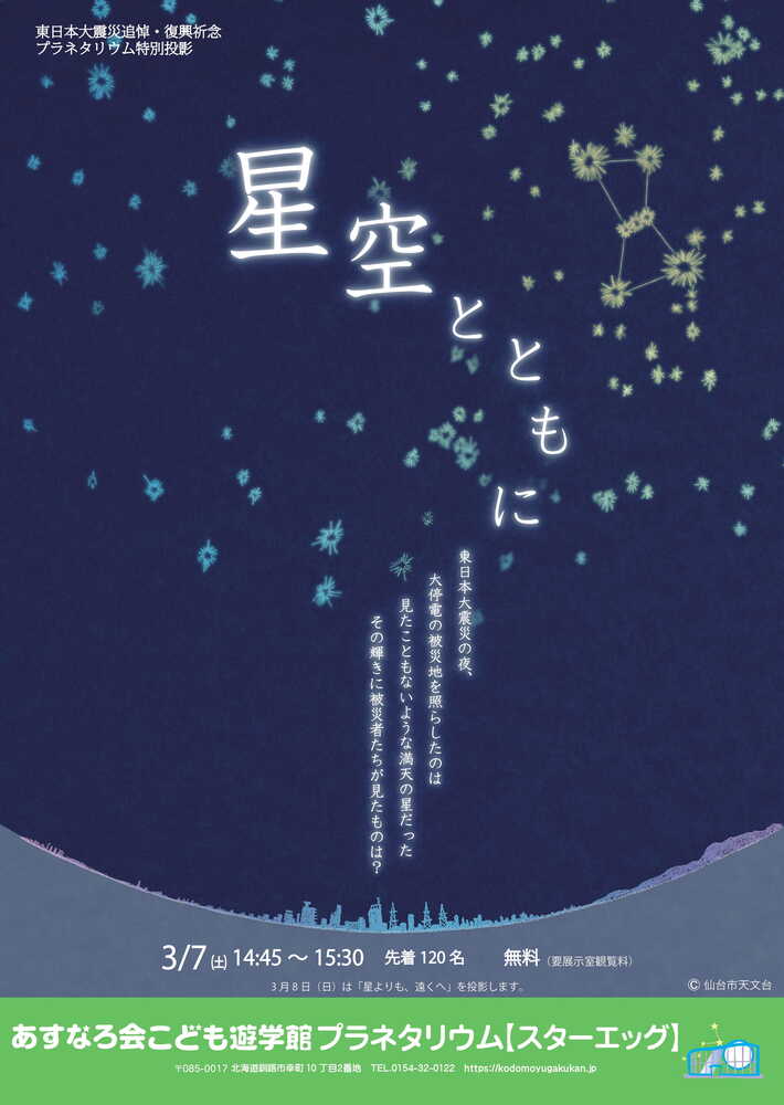 仙台市天文台が制作したプラネタリウム番組を特別無料上映します。